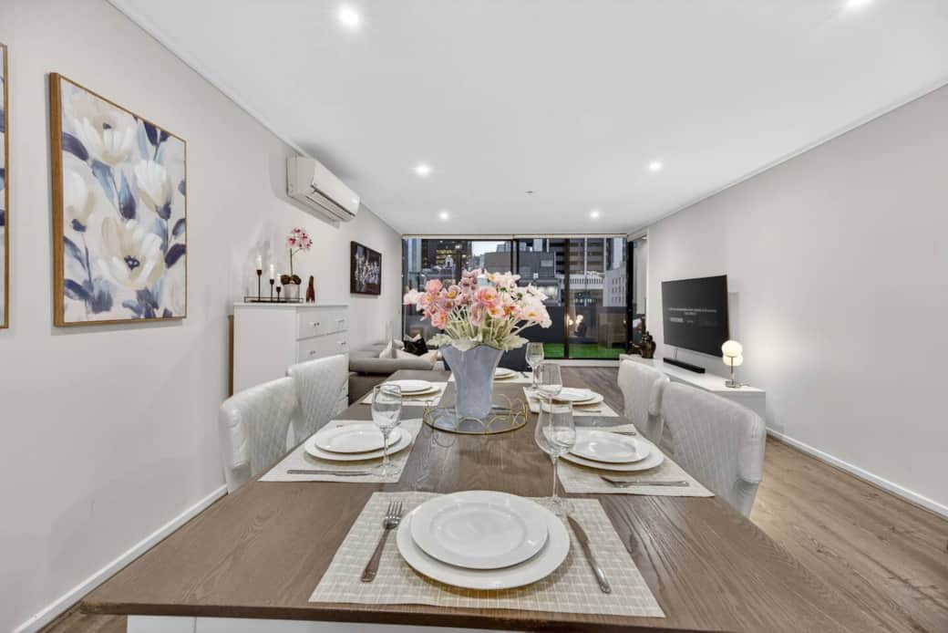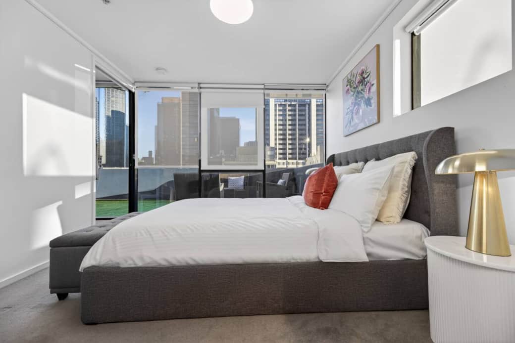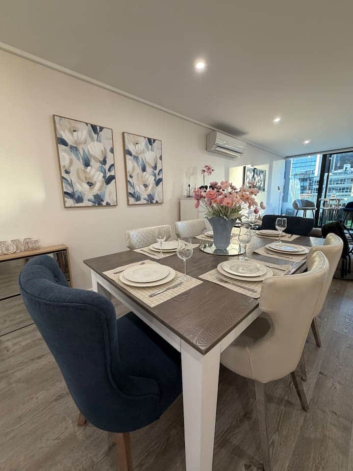Spacious 3BR Melbourne CBD retreat perfect for families, friends, or corporate stays. Features 2 queen + 2 single beds, 2 bathrooms (ensuite & jacuzzi), huge open-plan lounge, modern kitchen, and a balcony with stunning city views. Enjoy long swimming pool, double tennis courts, fully equipped gym, 24/7 concierge, and free parking. Walk to restaurants, shops, Docklands, and top attractions — everything you need at your doorstep for a premium city stay.